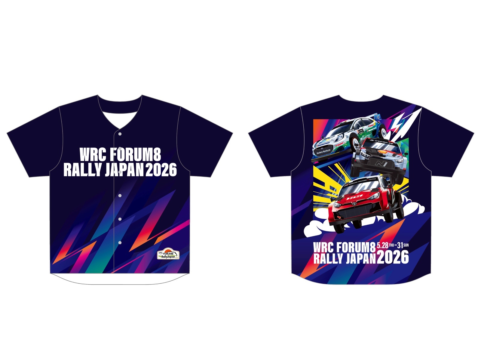 2026キービジュアルとラリーカーをベースボールユニホームデザインした躍動感のあるデザインの応援シャツ。一体感のあるラリージャパン観戦が楽しめます。