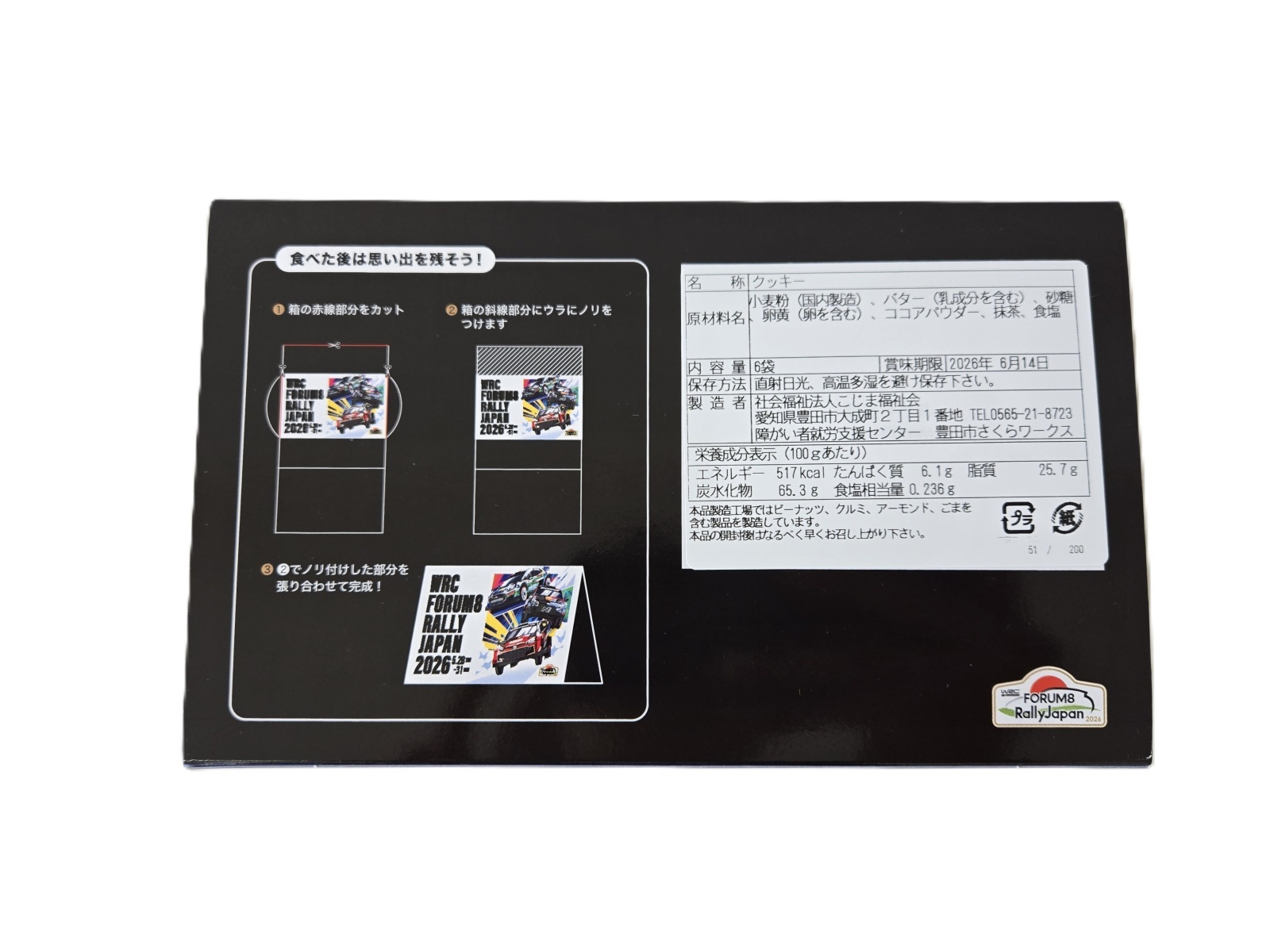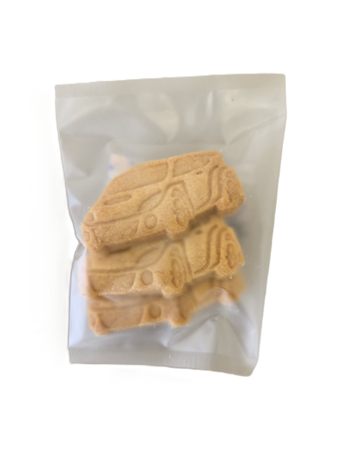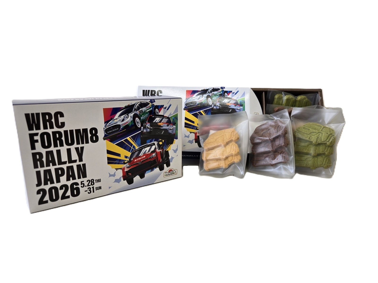 ラリーカーをイメージしたダイカットクッキー。障がい者施設で、一つ一つ丁寧に作られる特別レシピのクッキーはプレーン、チョコ、抹茶の3種類入り。
